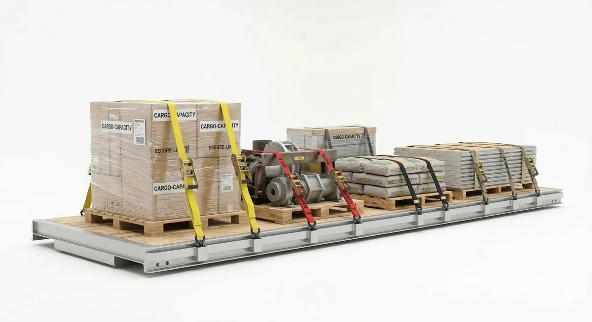 The deck is 102 inches wide (8 feet 6 inches), which is the maximum legal width for highway travel without permits. This width accommodates most standard construction equipment including full-size skid steers, excavators up to about 10,000 lbs, and tractors. If you're unsure whether your equipment will fit, give us a call with the dimensions and we'll help you determine compatibility.